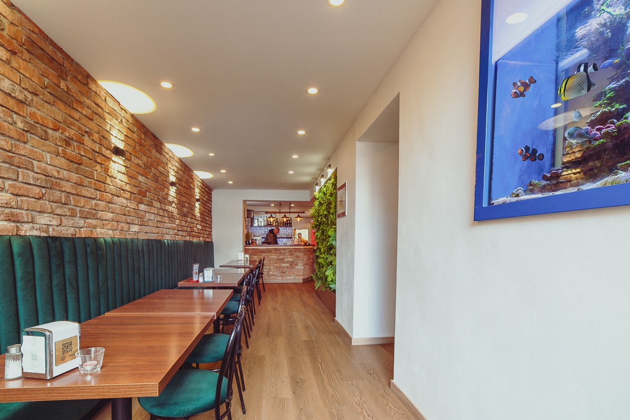 Jasne, słoneczne ściany, ukwiecony ogródek i drewniane stoły przywodzą na myśl południowe kraje, poobiednią sjestę,
